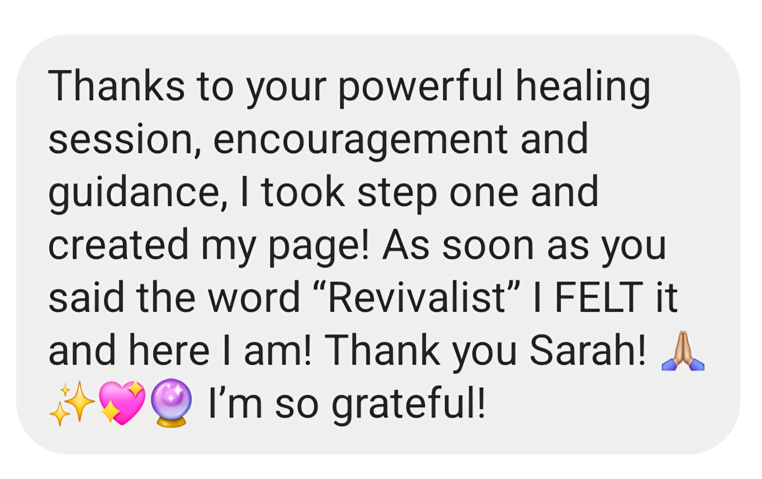 After the session, Sarah will bring you back to the room to discuss what happened during the session and any messages she received from your spirit team.
